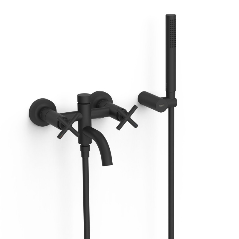 Змішувач для ванної Tres Mont Blanc з душовим гарнітуром матовий чорний