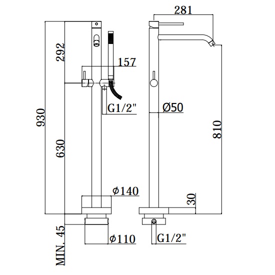 1) Змішувач для ванної Paffoni Light змішувач підлоговий чорний матовий