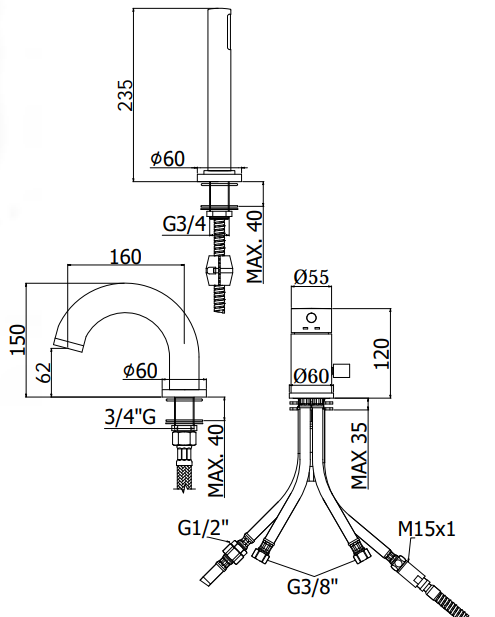 Змішувач на борт ванни Paffoni Light змішувач , на 3 отвори, з«Збільшеним витратою», в комплекті: