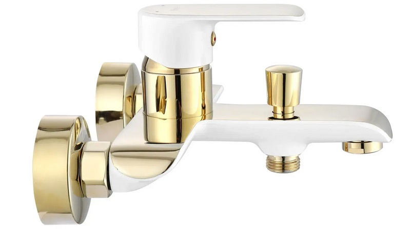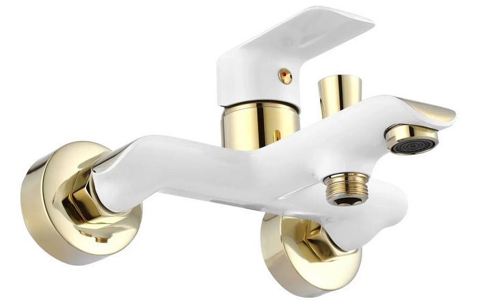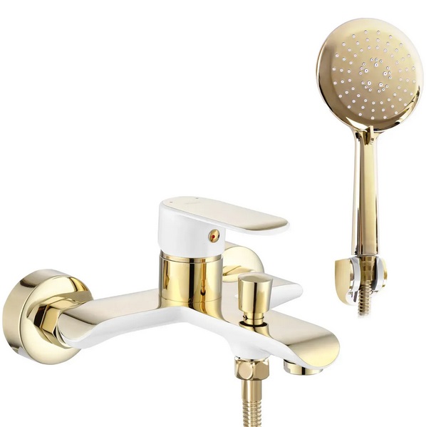 Змішувач для ванної Rea Bloom одноважільний з душовим гарнітуром білий/золото REA-B9932
