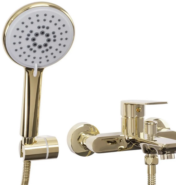 Змішувач для ванної Rea Mayson одноважільний з душовим гарнітуром золото REA-B5662