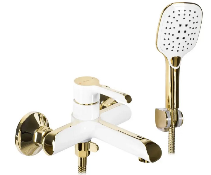 Змішувач для ванної Rea Melia одноважільний з душовим гарнітуром білий/золото REA-B2710