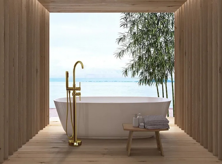 Змішувач для ванної Rea Ortis з душовим гарнітуром золото REA-B7430