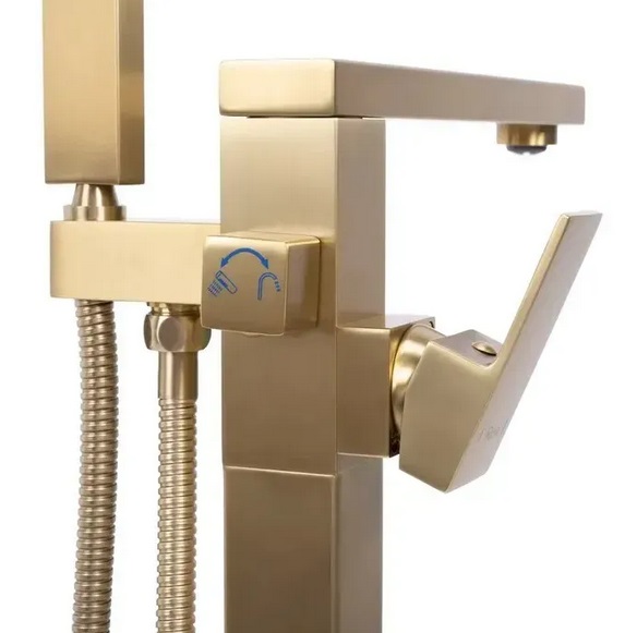 змішувач з фруктуром для підлоги ванної кімнати з душовим набором матового золота