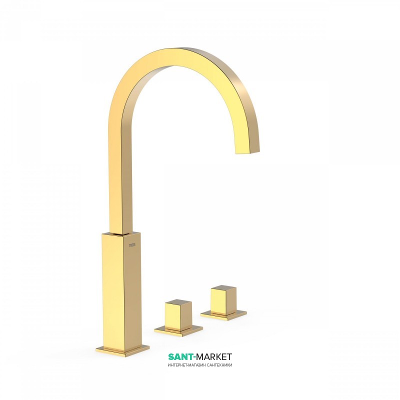 Змішувач для ванної Tres Cuadro colors двовентильний монтаж на борт ванни золото 00810504OR