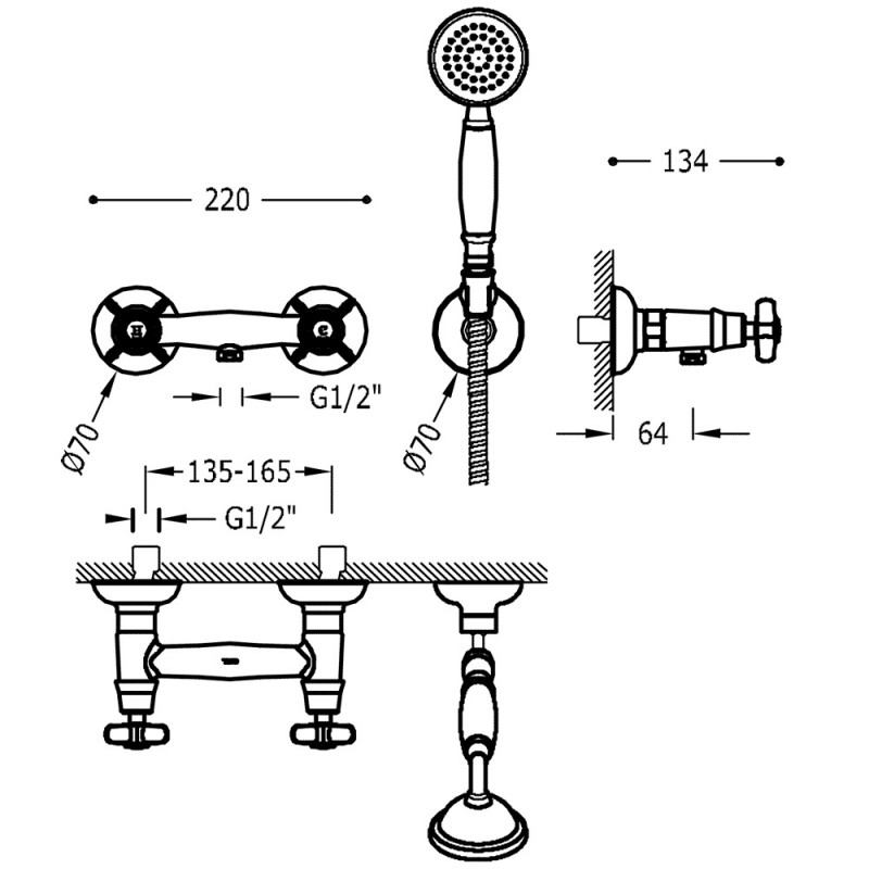 Змішувач для душу Tres Tres-Clasic двовентильний з ручним душем хром 24216301