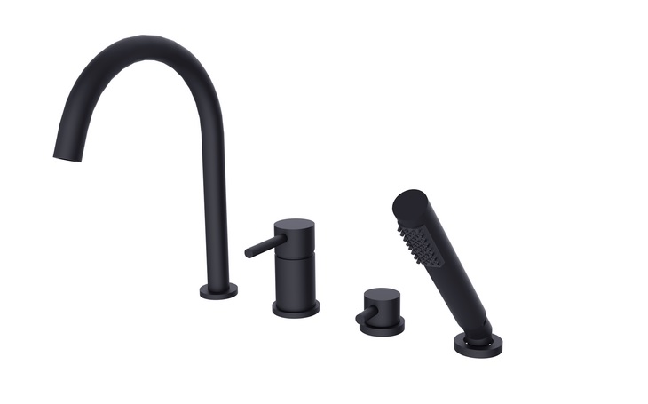 Змішувач на борт ванни Besco Illusion із душовим гарнітуром чорний матовий BW-I4-CZ