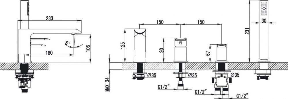 Змішувач на борт ванни Devit Iven з душовим гарнітуром хром