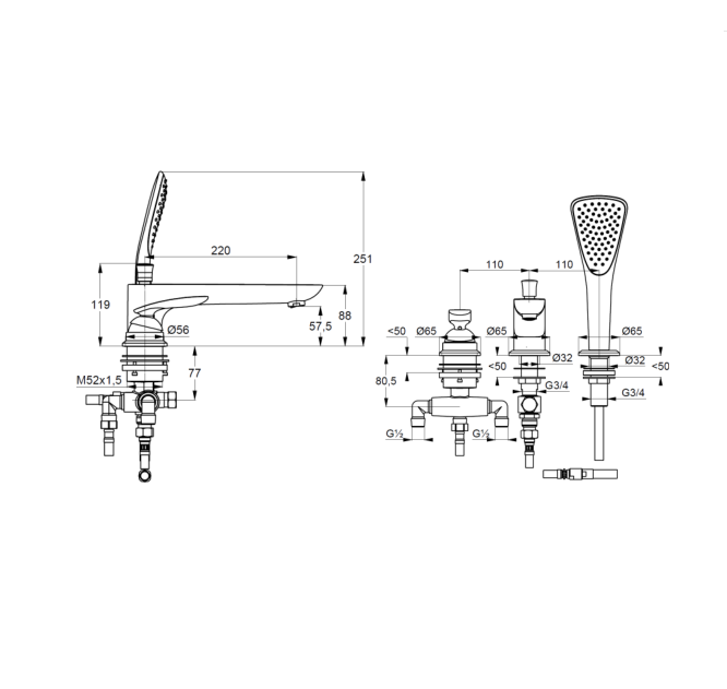 1) Змішувач на борт ванни Kludi Balance з ручним душем чорний матовий / хром
