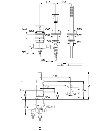 Змішувач на борт ванни Kludi Bozz на 3 отвори хром 384480576