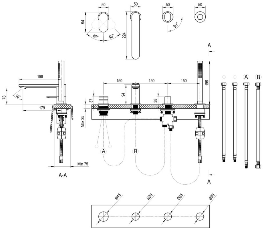 - Розділ: Комплекти змішувач для ванної з душовим гарнітуром