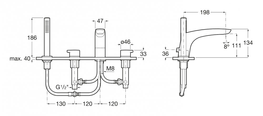 Змішувач на борт ванни Roca Insignia з ручним душем хром