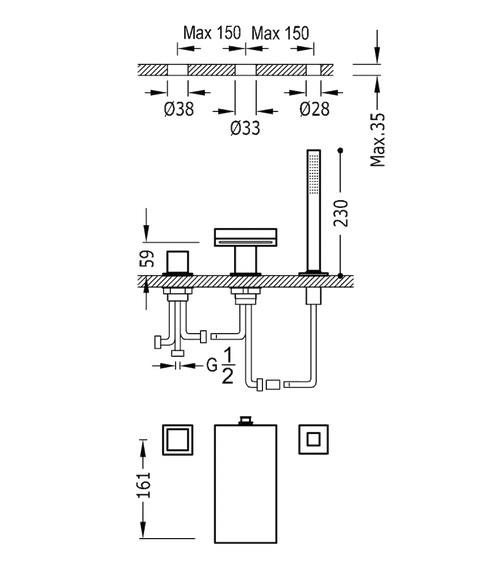 Змішувач на борт ванни Tres Cuadro Tres з ручним душем хром