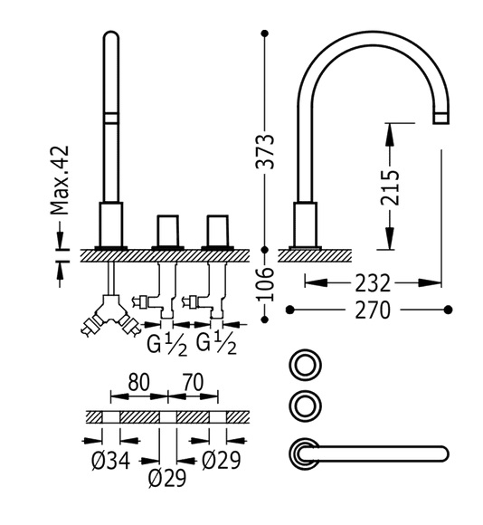 - Розмір врізного отвори: Ø 34 мм, Ø 29 мм