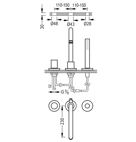 Ø 48 мм, Ø 43 мм, Ø 28 мм