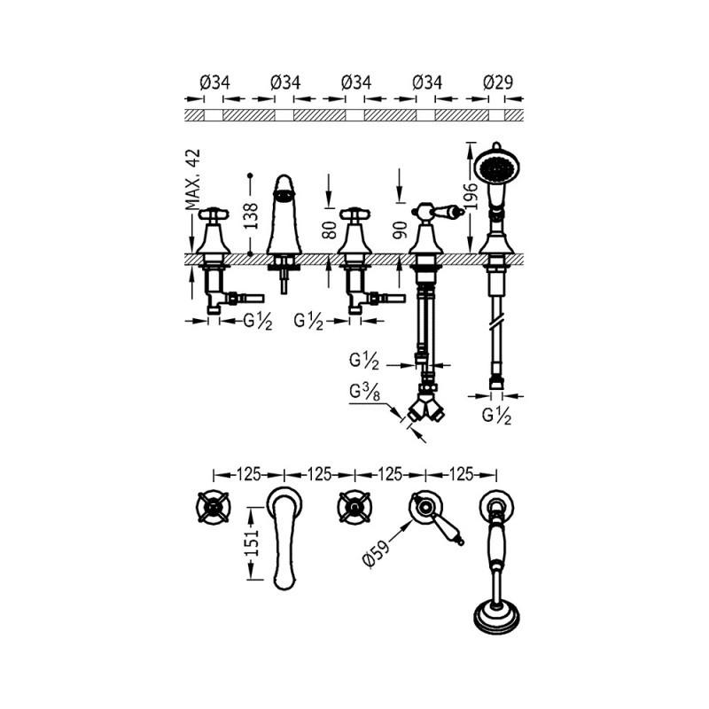 1) Змішувач на борт ванни Tres Tres-Сlasic