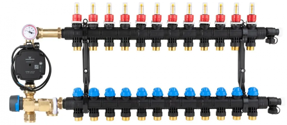 - Встановлюється між джерелом тепла та колектором поверхневого опалення в шафі колектора.