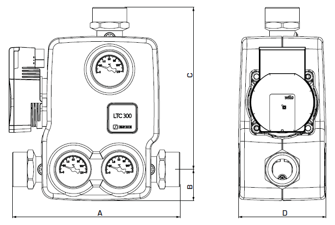 Серія LTC300 - змішувальний тепловий вузол звбудованим енергоефективним насосом. LTC300 сконструйований для захисту котла за низької температури зворотної лінії. Підтримка високої та стійкої температури у зворотній лінії сприяє підвищенню коефіцієнта корисної дії котла, знижує утворення накипу та збільшує термін його експлуатації. LTC300 застосовується в опалювальних системах, де котли, що працюють на твердому паливі, використовуються для заповнення теплоакумуляторів.