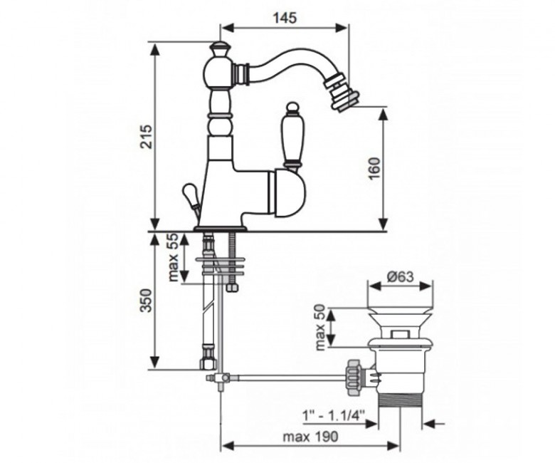 - Висота змішувача, мм: 215