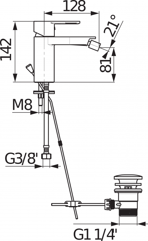 1) Змішувач для біде Jika Mio змішувач з донним клапаном хром 12345678