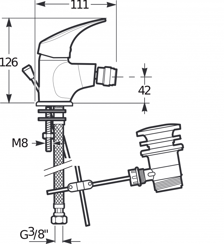 1) Сме итель для біде Jika Talas змішувач з донним клапаном хром 12345678