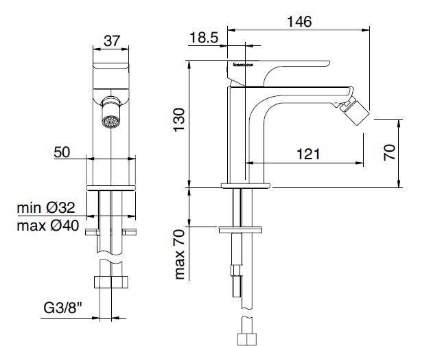 1) Змішувач для біде Treemme Hask змішувач латунь хром