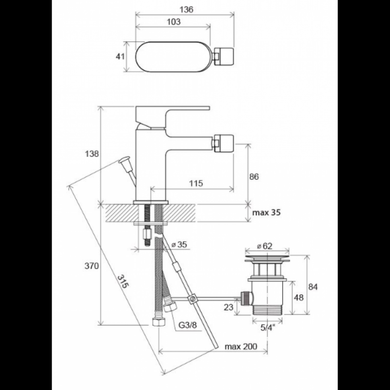 Змішувач для біде змішувач Ravak Chrome CR 055.00 з донним клапаном