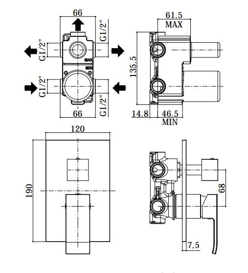 Змішувач для душа прихований (вбудований) Paffoni Elle хром EL 018 CR / M