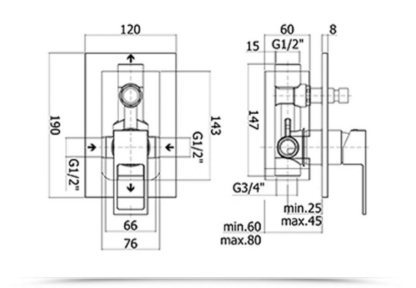Змішувач для душа прихований (вбудований) Paffoni Effe хром EF 015 CR