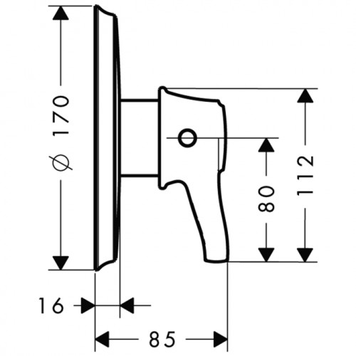 Hansgrohe Ecostat Classic 15754000 - зовнішня частина термостату, що вбудовується у стіну на внутрішню. Термостати, що вбудовуються, зазвичай використовуються в душових кабінах для управління верхнім або ручним душем. Якщо вам потрібен і той і інший, то встановлюють вентиль, що перемикає. На рукоятці знаходиться запобіжник на температуру трохи більше 38°C. Щоб зробити тепліше, натисніть на запобіжник.
