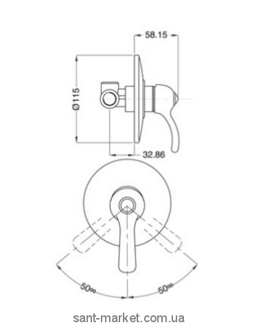 Змішувач для душу Bugnatese модельного ряду LEM має круглу основу діаметром 11,5 см, по центру якої розташований важіль для регулювання подачі гарячої та холодної води, що виступає приблизно на 5,8 см від площини основи. Він має злегка вигнуту та надійну форму, що робить перемикання води простим та зручним. Запас ходу важеля 5 см вправо/ліворуч від вертикального положення, що дозволяє легко отримати бажану температуру води, при цьому не докладаючи зайвих зусиль.