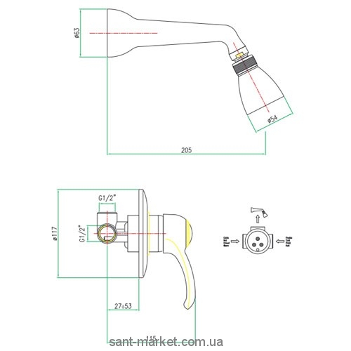 Змішувач для душа вбудовується Fiore колекція Jafar з душовим набором хром 47CR5131 Chrome