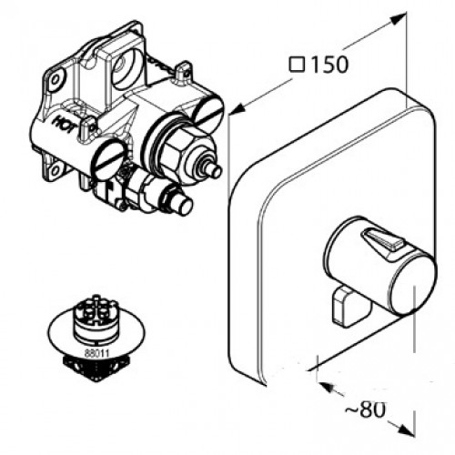 Змішувач для душа вбудовується Kludi Push з термостатом для одного джерела води прямокутний хром 388030538