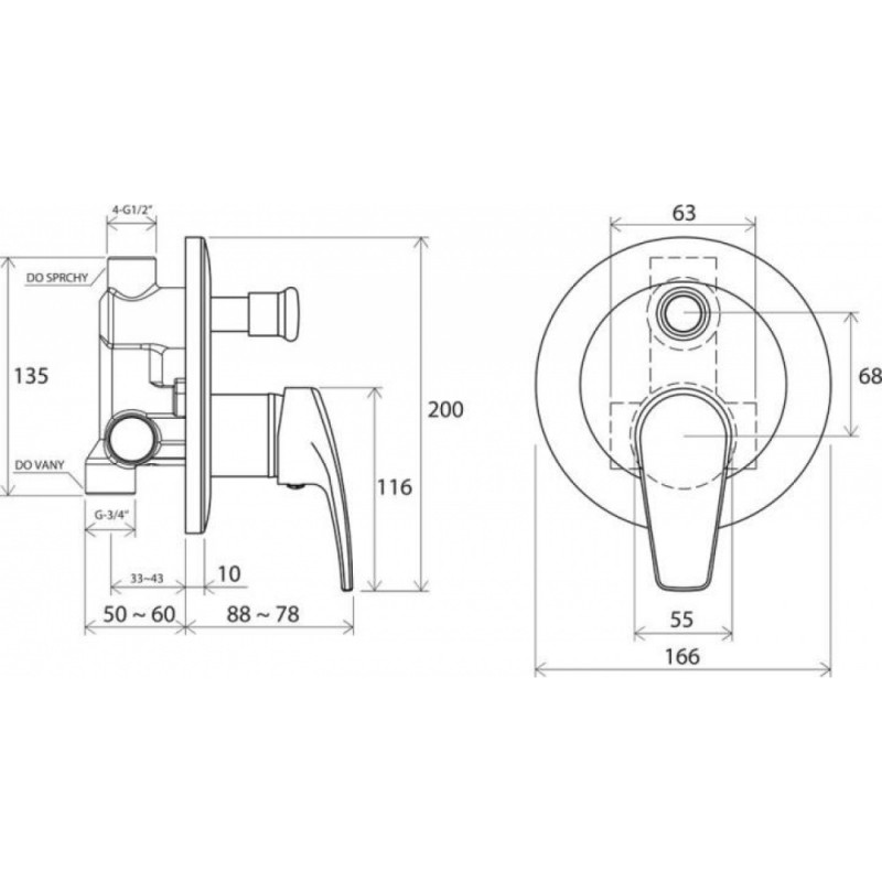 Змішувач для душа вбудовується Ravak Neo NO 061.00 змішувач з перемикачем