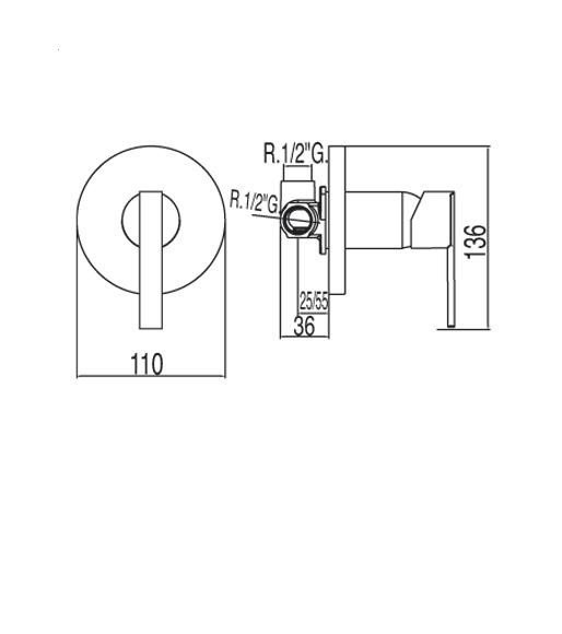 1) Змішувач вбудовується для душа