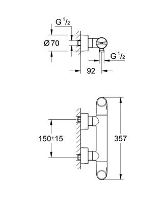 Змішувач для душу настінний двухвентильний з термостатом Grohe колекція Veris хром 34330000