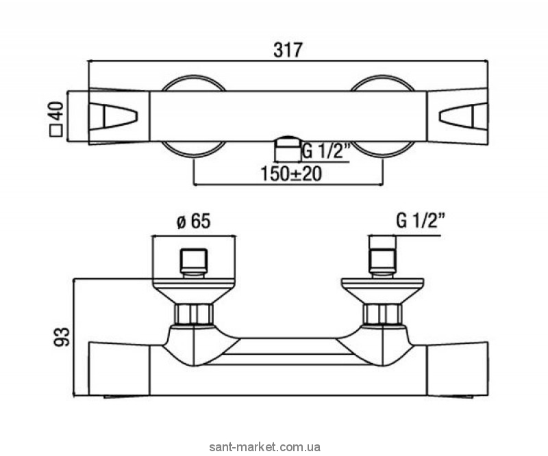 Змішувач для душу настінний двухвентильний з термостатом Alpi SPA City хром CI61155CR