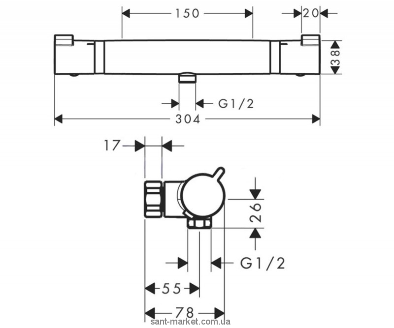 Змішувач для душу настінний двухвентильний з термостатом Hansgrohe Ecostat Comfort хром 13119000
