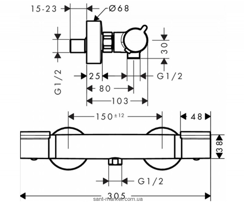 Змішувач для душу настінний двухвентильний з термостатом Hansgrohe Versostat хром 15368000