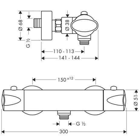 Змішувач для душу настінний двухвентильний з термостатом Hansgrohe Centostat хром 14260000