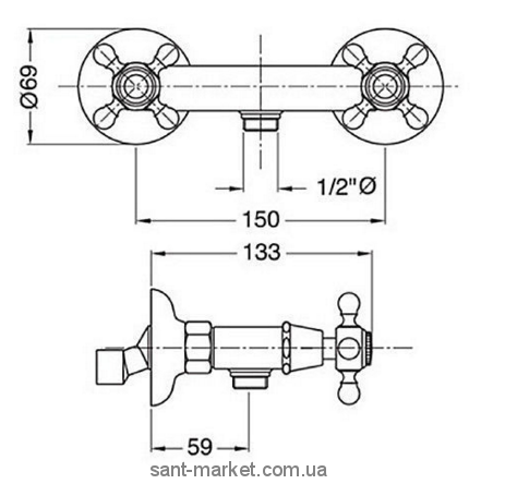 Змішувач для душу настінний двухвентильний Bugnatese колекція Lady хром LADCR947