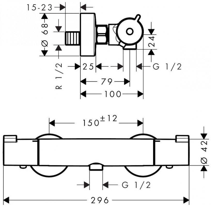 Змішувач для душу двовентильний настінний з термостатом Hansgrohe Ecostat 1001 CL хром 13211000
