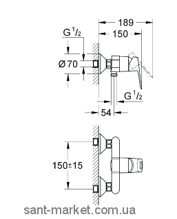 Змішувач для душу настінний Grohe колекція Bau Loop хром 23340000