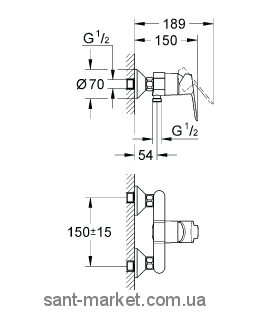 Змішувач для душу настінний Grohe колекція BauEdge хром 23333000