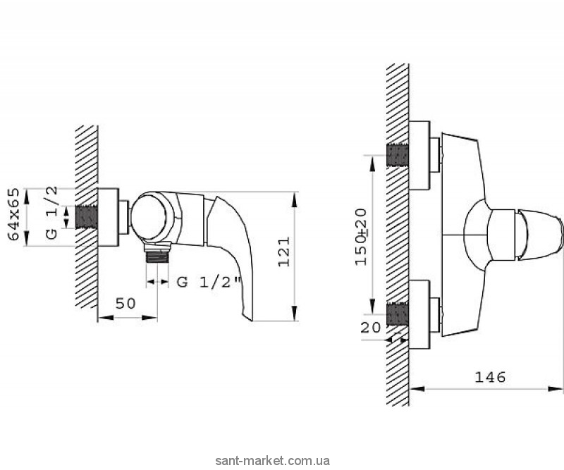 К-ть і діаметр необхідних отворів для установки - G1?2 150 ± 20 mm