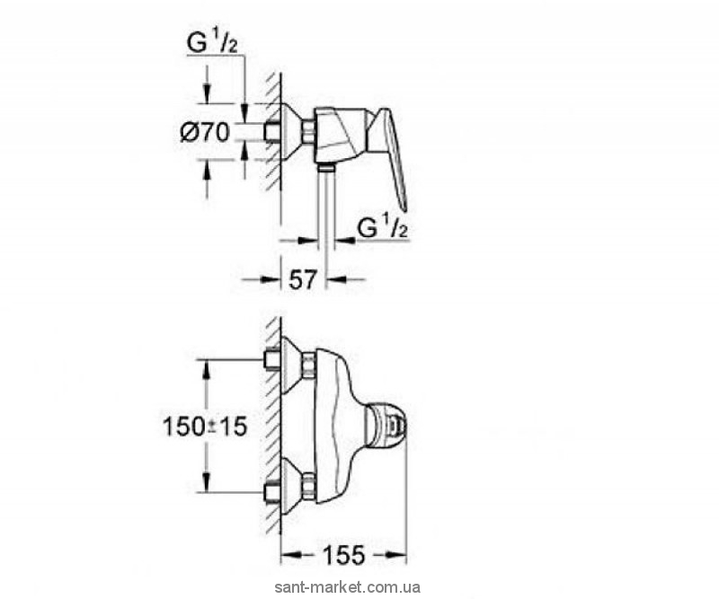 Змішувач для душу настінний змішувач Grohe колекція Touch хром 32263000