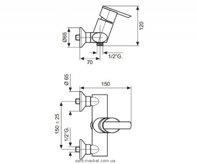 Змішувач для душу настінний змішувач EMMEVI колекція Elly хром CR41002