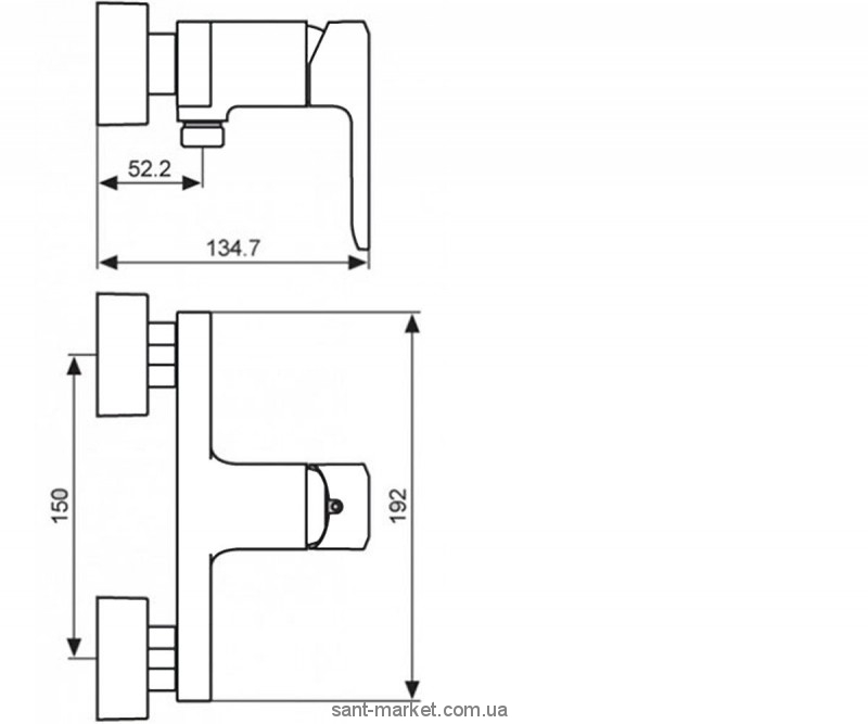 Змішувач для душу настінний змішувач EMMEVI колекція Nefer хром CR77002