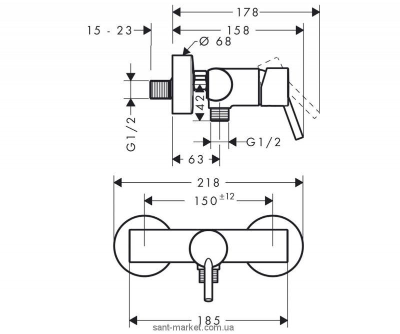 Змішувач для душу настінний змішувач Hansgrohe колекція Fina хром 15116000