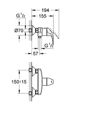 Змішувач для душу настінний змішувач Grohe колекція Bau Curve хром 32807000